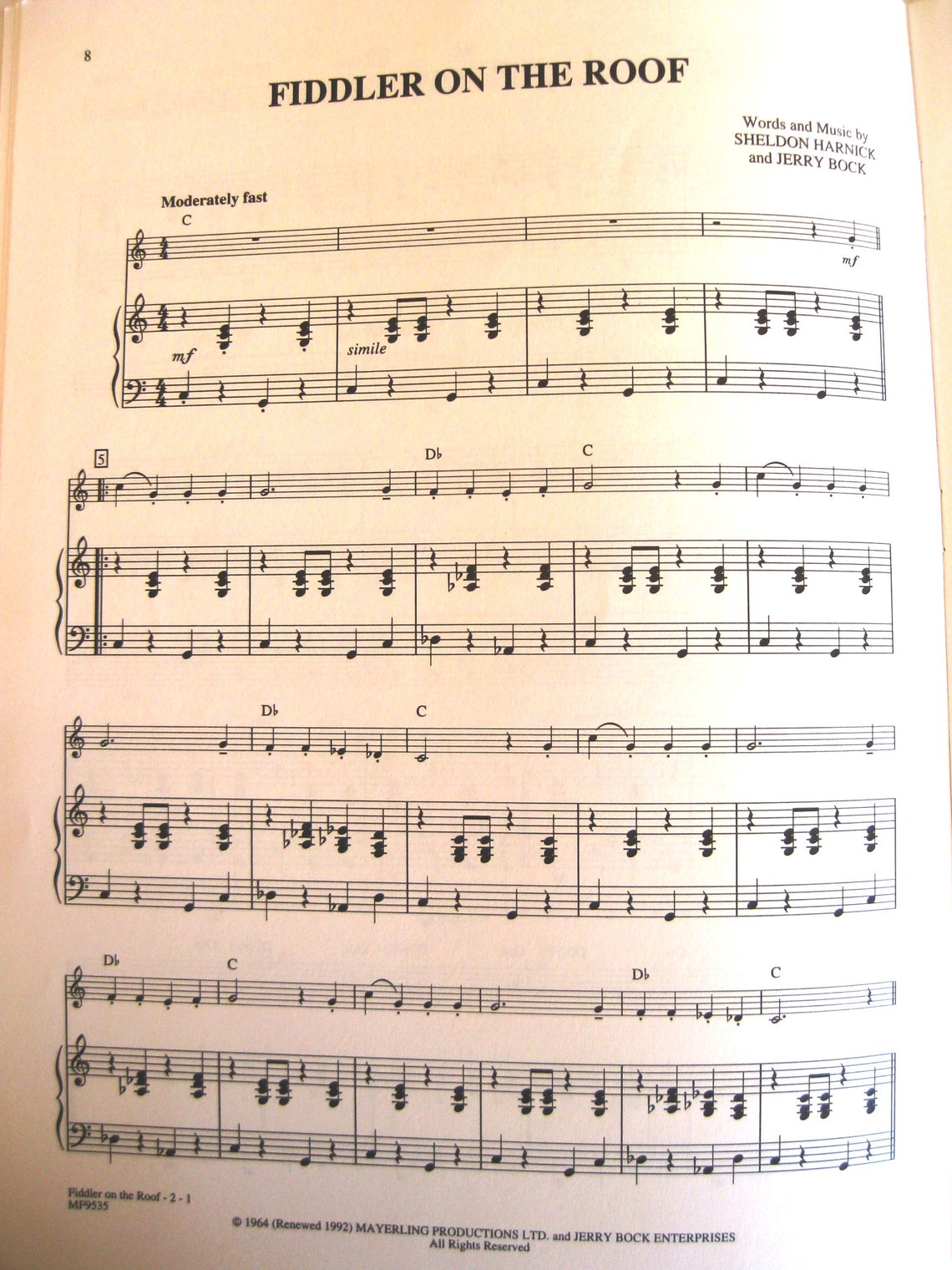 FIDDLER ON the ROOF Sheet Music Book Piano 40 Etsy