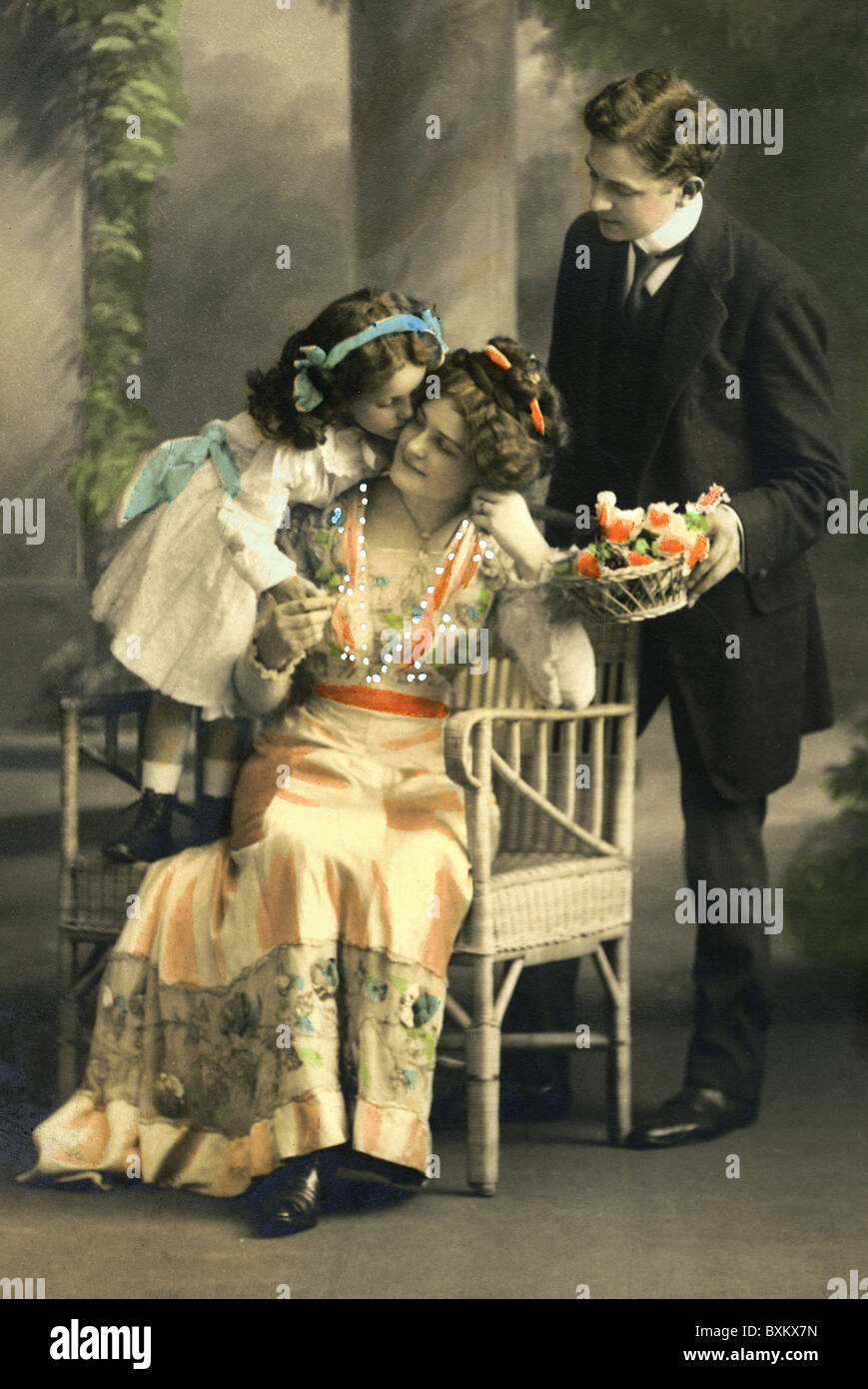 people, mother's day, man and daughter congratulating mother, Germany, 1912, AdditionalRights