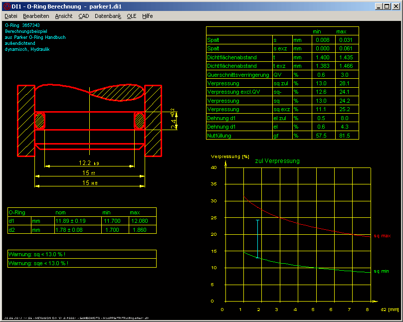 DI1 Berechnung von ORingen nach ISO 3601 und DIN 3771